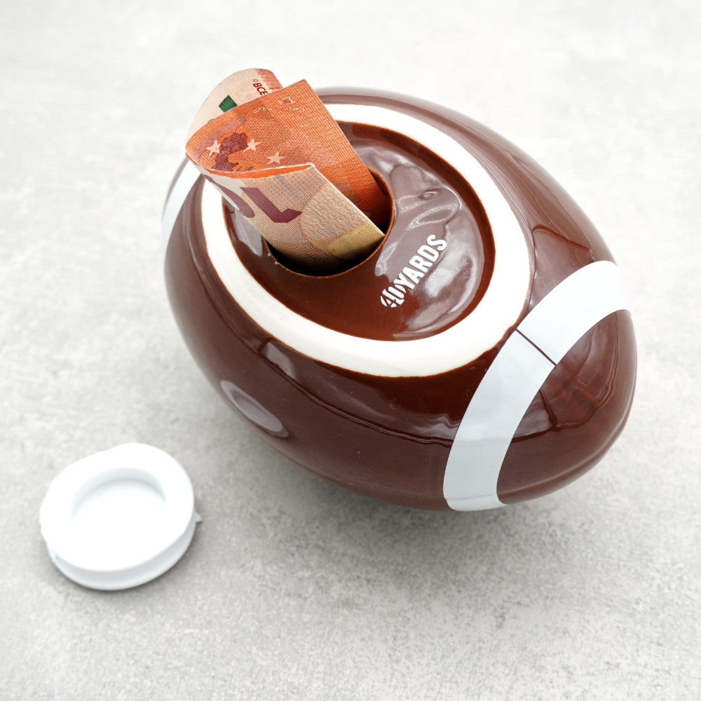 40YARDS American Football Spardose aus Keramik – Sparschwein mit Leder-Naht